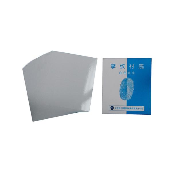 0.35mm thick hardpaper, white on both sides, one sided is composite high gloss plastic film. The coated surface is used for palmprint substrate, and the uncoated surface is used for writing material evidence information.